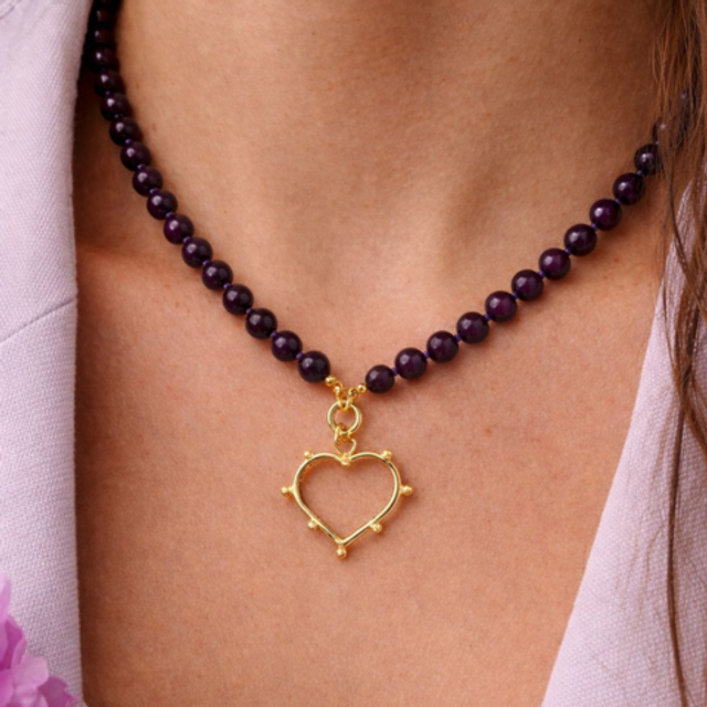 Collar Amatista con dije de corazón