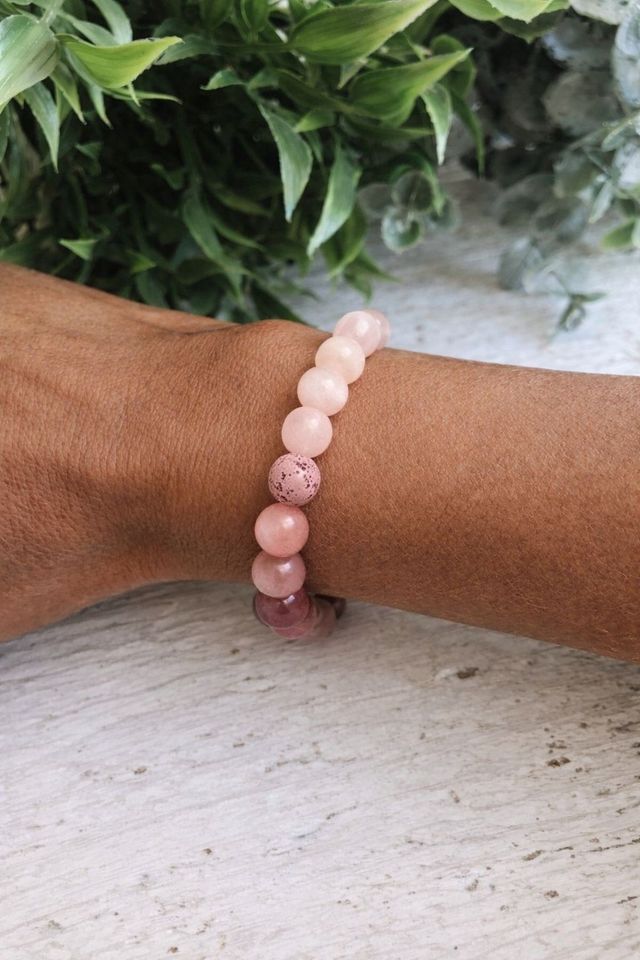 La pulsera que combina ágata Blanca, kunzita y ágata hindú une tres energías complementarias que favorecen el equilibrio integral del ser. El ágata blanca actúa como amplificador y purificador energético, aportando claridad mental y armonía, mientras la kunzita trabaja el amor propio, la sensibilidad y la sanación emocional profunda. El ágata hindú, por su parte, brinda estabilidad, protección y conexión con la tierra, ayudando a mantener la calma y el enfoque. En conjunto, esta pulsera es ideal para quienes buscan paz interior, equilibrio emocional y una energía suave que acompañe los procesos de crecimiento personal con serenidad y consciencia.
