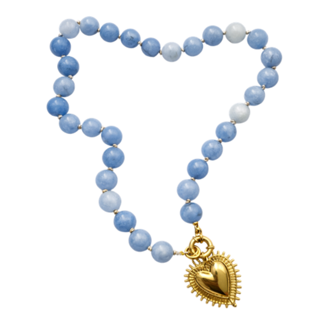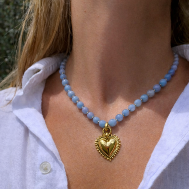 Inspirado en Marie Curie, una mujer que iluminó el mundo con su conocimiento y su perseverancia, este collar está elaborado en ágata azul, una piedra asociada a la claridad mental, la calma y la comunicación consciente. Así como ella trabajó en silencio durante años hasta lograr descubrimientos que transformaron la historia, el ágata azul simboliza la fuerza serena: ayuda a ordenar los pensamientos, aporta paz en medio del caos y favorece expresar ideas con seguridad y sabiduría. Este diseño honra a la mujer que no necesita imponerse para brillar, porque su verdadera luz nace de su inteligencia, su constancia y su propósito.